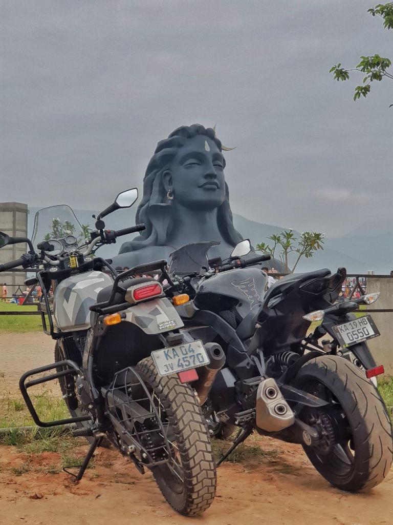 As we reached coimbatore all tired ,around 2pm, we decided to crash at Coimbatore as we felt riding up the Anamalai forest range would be stressful and would leave us very less time on the hills.Our main intention of this ride was to experience this Anamalai tiger reserve and those magnificent 40 hairpin bends.So decided to halt at coimbatore.Booked a hotel nearby(Gokulam Park) and spent our evening visiting the giant Adiyogi statue (Shiva bust) which was located at an hours ride from our hotel(50 kms). Lukily it was a sunday and there was lazer show exhibited on the bust. We were just lucky to witness the spectacular creation.Place was enthralling and mesmerising.The vibe it had has to be felt there only, cannot be described here.