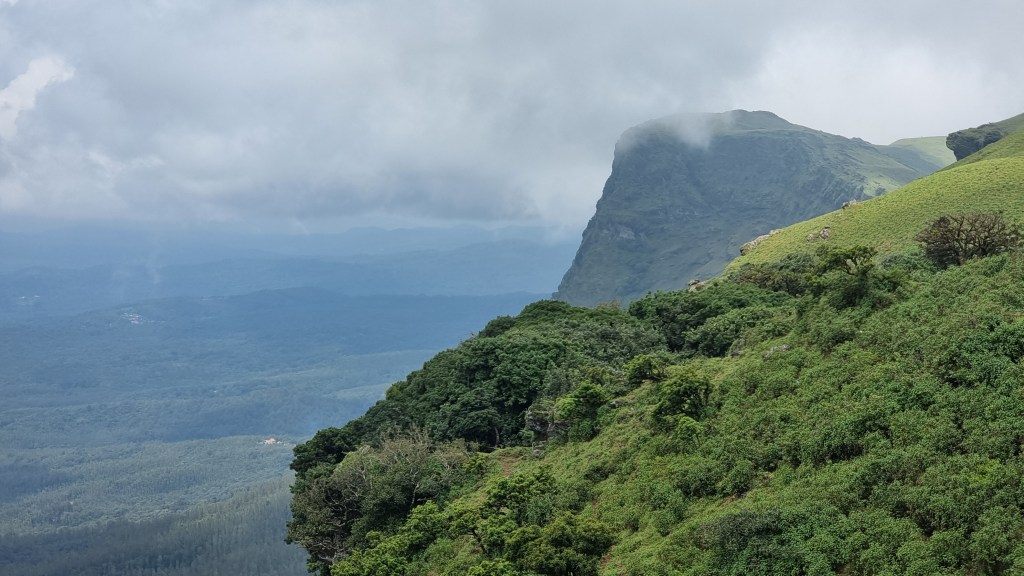 Experiencing western ghats in monsoon has its own charm.All the water falls enroute pouring at their best and lush mist filled forest and grasslands added to the excitement.So charted a road trip from Mangalore to Chikmagalur via Kudremukh and return via Charmadi ghats. Enroute we had planned to visit one of my aunt at Kalmane coffee estate and spend the night, but they were not available and so we changed our plans.We decided to drive via Kudremukh exploring nearby peaks and finally reaching Chikmagalur and staying in a hotel there and next day to explore all the Chikmagalur peaks and crash for the day at the Trivik hotel and resorts.Initially it was just me ,wife and kids..later included my dad and mom too as its been ages we went on a holiday together.