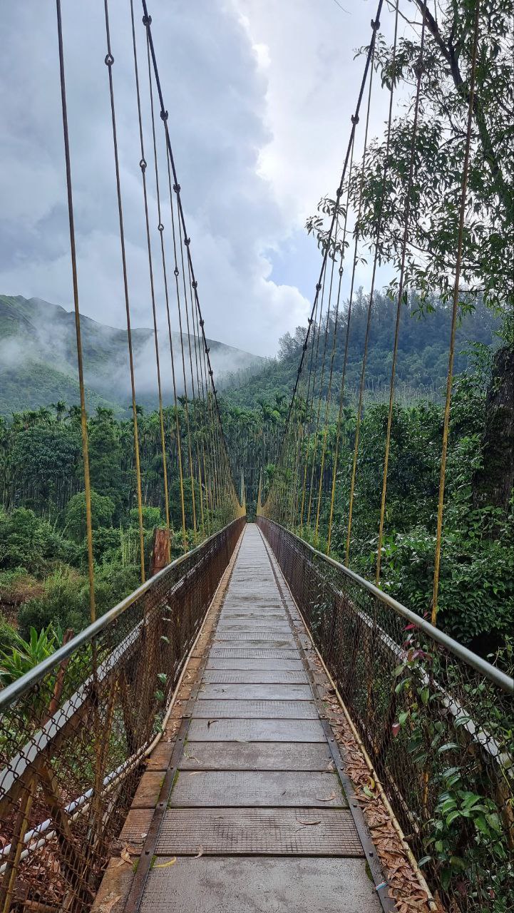 While continuing driving, we found one hanging bridge just after Kudremukh and was pleasantly beautiful.There was one small coffee shop next to it, lady there prepared one of the best filter coffee and masala tea..met two bikers from Bangalore, came to know one of the bikers grandmom stays right next to our apartment in Mangalore.The views from the bridge were enchanting.