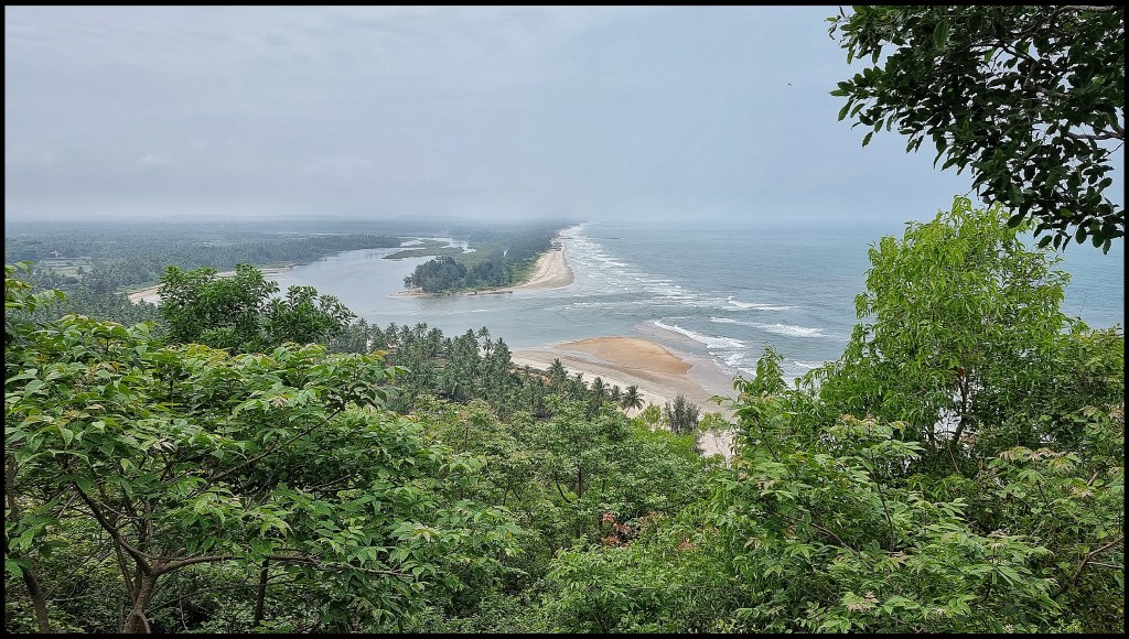 Leaving Marwanthe, enroute we took a detour to Ottinene ,Byndoor area to explore sunset point which I had explored 14 years back on my Mahindra Scorpio.Its a secluded sunset point with two forest cottages.The view offered is just fantastic and mindblowing. You can trek down to the temple and beach side.From the hillock you can witness the confluence of Arabian sea and Baindoor river.